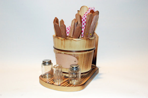 Salz-, Pfeffersteuer und Zahnstocherglas inkludiertBesteck und Servietten nicht inkludiert